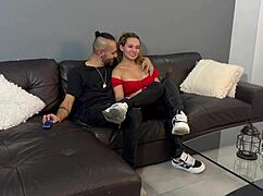 my girl's huge tits get me so hard we fuck quick during movie night 🍒💦