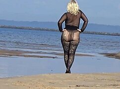 flashing my big tits and ass on beach feels so naughty