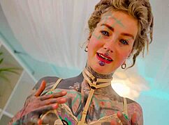 The tattooed goth raver receives a hardcore facial after intense blowjob.