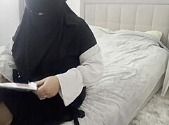 arab milf slips into pantyhose on cam and fingers her wet pussy excited