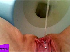 shaved pierced pussy unleashes massive pee stream in bathroom