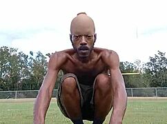 Pasangan hitam berlekuk foreplay workout POV hisap anal