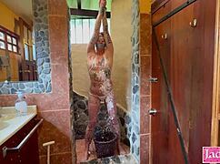 Autumn South uživa v solo tuš prhanju z dildom pod prho