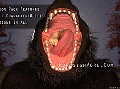 Werewolf devours barefoot cocktail waitress feet and swallows monster load