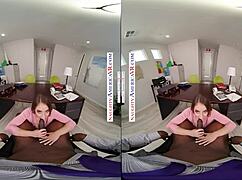 Solo långhårig brunett Roxanne använder sexleksak i VR.