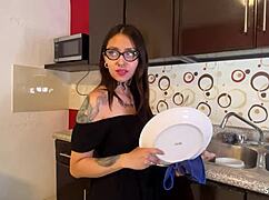 דנר מנדז, בן בעלי, מזיין אותי במטבח. סטוד מקועקע עם זין ענק שולט בי.