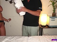 סטפ מילף עם ציצים גדולים משתמשת במסאז' נורו רטוב כדי לעזור לסטפסון להירגע
