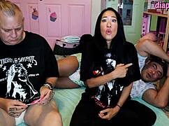 stepdad and friend sneak dirty fucks with cute stepdaughter behind stepmom