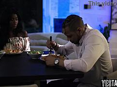 Svart milf njuter av vilt threesome med djup action