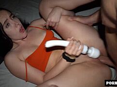 Lovagolom a hatalmas anál dildót nedves puncival és cuki mozdulatokkal