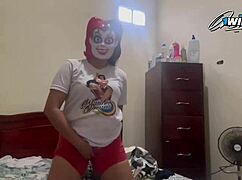 Olizuji a prstím těsnou kundičku v kuchyni, až vystříkne