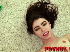Petite 18yo teen bounces on thick cock rubbing wet pussy pov style