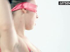 blindfolded brunette stumbles into a steamy surprise threesome