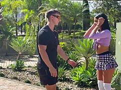 Jolie blonde en culotte rose joue avec son trou serré 18+ avec un plug. Puis chevauche la bite dure de son mec
