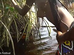 skinny african village girl bathing outdoors gets surprised skinny waist pounding in forest