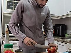 Watch me cook, strip, jerk off, and cum on food!