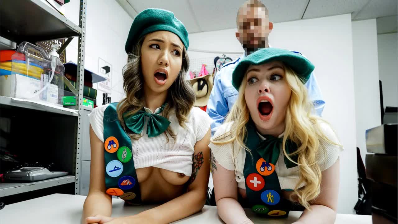 yo, see this shoplifter milf and stepdaughter get drilled by an officer in his office, wild stuff!