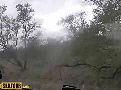 Chubby shaved slut squirts uncontrollably on massive BBC outdoors